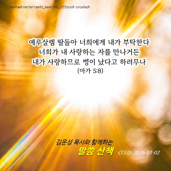 | 말씀산책 736일] 아 8:6-7 '죽음같이 강한 사랑' (1) | 2026.01.04 |