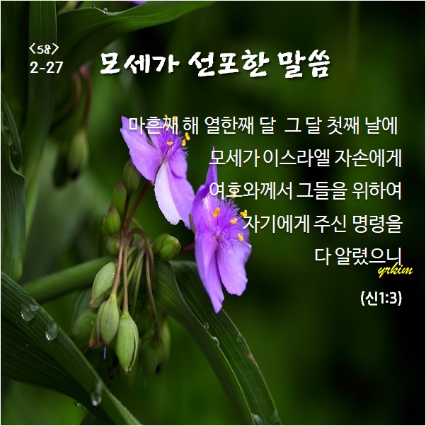 "마흔째 해 열한째 달 그 달 첫째 날에 모세가 이스라엘 자손에게 여호와께서 그들을 위하여 자기에게 주신 명령을 다 알렸으니" (신:1:3)